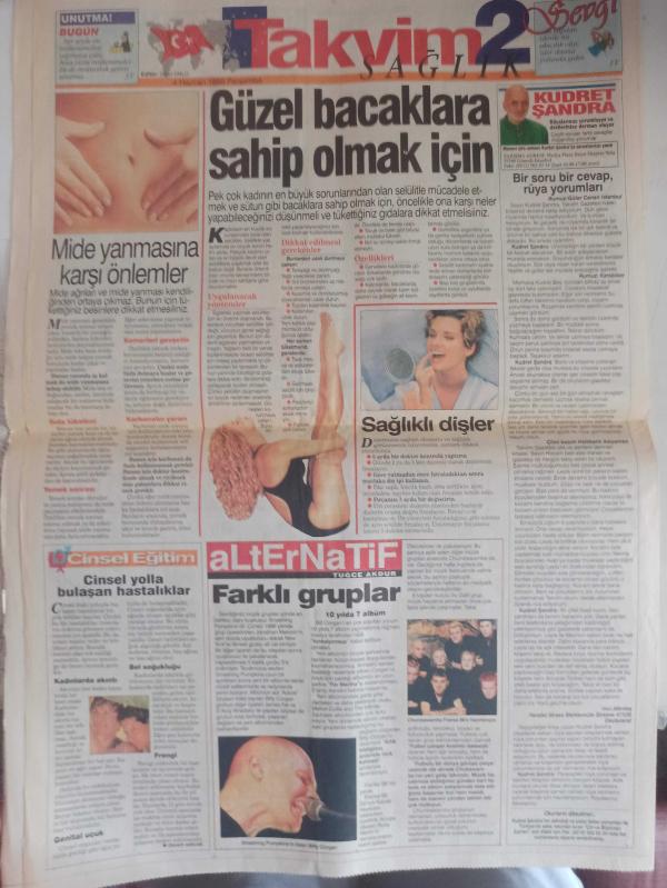 Takvim Magazin Gazetesi - 4 Haziran 1998 - Demet Akalın - Aşk Santajı - İbrahim Kutluay - Utanmaz Jigolo - Don Johnson 70 Yaşındaki Trilyoner Bir Kadınla Yaşamaya Başlayınca Melanie Griffith Küplere Bindi - Sibel Alaş - Atilla Atasoy - Türkan Şoray - Murat Göğebakan - Atilla Atasoyy - Leonardo Di Caprio - Şebnem Ferah Albüm Hazırlıyor - Erkin Koray Albümle Geliyor - Maydanoz Çizgi Romanı - Çocuklar İçin Bulmaca - Dev Çengel Bulmaca - Beton Dev - Karaoğlan Bozkaşı - 007 James Bond - Kahraman Şerif - Yasmin - Teksas'a Dönüş Çizgi Romanı - Yıldız Falı - Cinsel Yaşam ve Sağlık - Neden Niçin Nasıl? - Mide Yanmasına Karşı Önlemler - Güzel Bacaklara Sahip Olmak İçin - Alternatif - Tuğçe Akdur - Farklı Gruplar - Kudret Şandra fotoğraf ve haberi - Tam Takım Gazete Yıpranma, sararmalar, kupon kesiği ve yırtılmalar zamana bağlı olarak görülebilir
