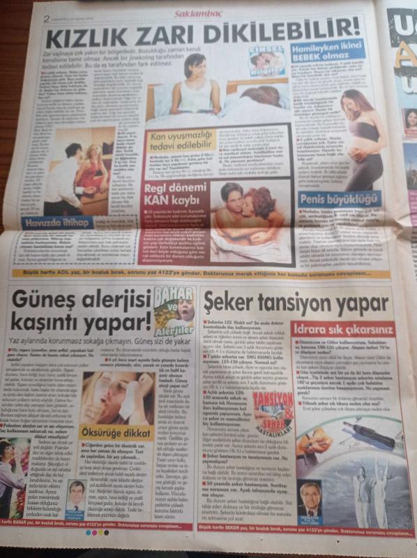 Takvim Saklambaç Gazetesi - 25 Nisan 2009 - Kızlık Zarı Dikilebilir - Şarkıcı Hadise - Demet Akalın Bekaret Kemeri Taktı - Dansöz Asena Altın Kızlar'da - Ece Erken Tuncer Öztarhan'ın Boşanma Davası Yılan Hikayesi - Operacı Hakan Aysev - Savaş Ay - Tamer Karadağlı - Nurgül Yeşilçay adlı eser Türkçe dilindedir.