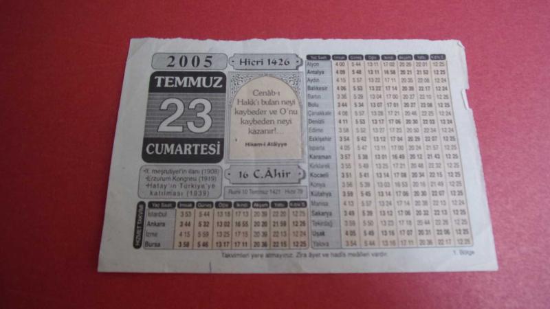 Takvim Yaprağı - Özel Günler İçin Hatıra Hediye/ 23.temmuz cumartesi.2005, en son 9 ay önce güncellenmiştir.