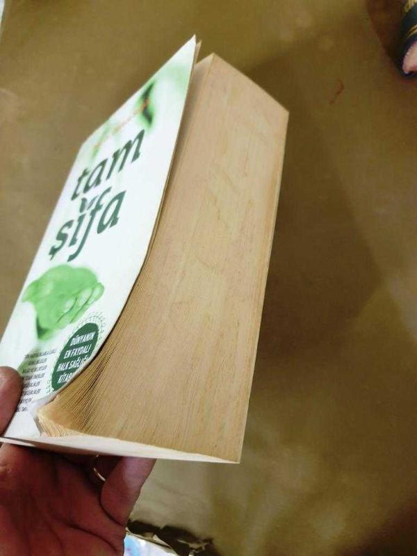 Sayfa uçlarında içe taşmayan lekelenme , sayfa köşelerinde fotoğraftaki gibi kıvrılma ve kapakta hafif yıpranma vardır. İlk sayfada isim yazılı.
