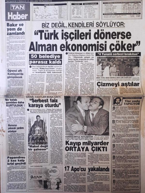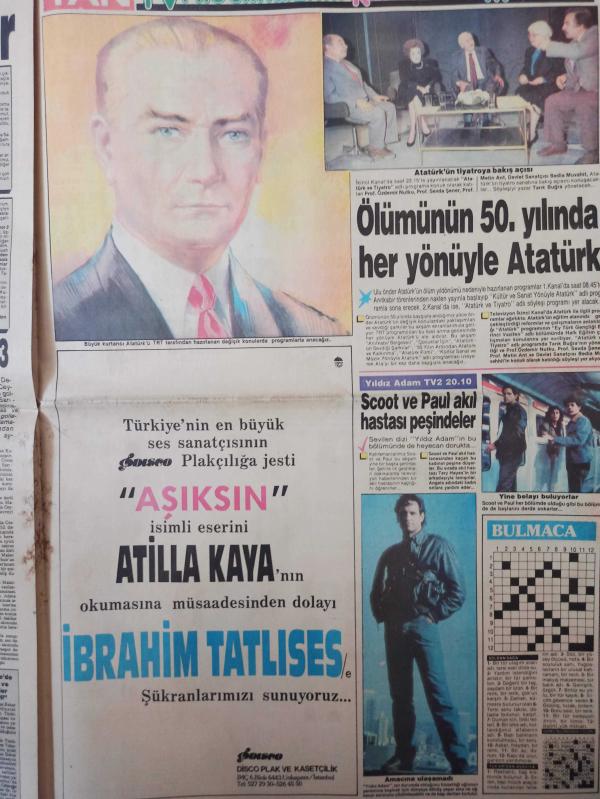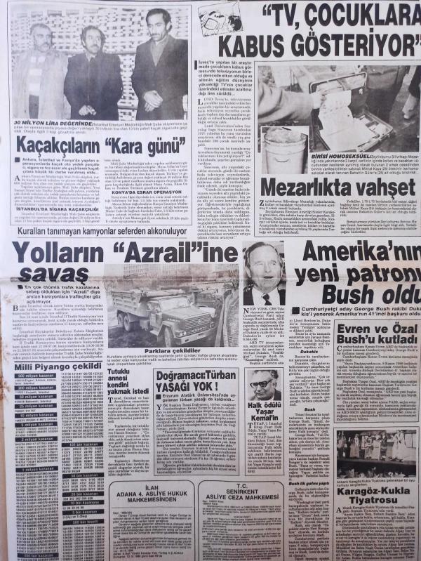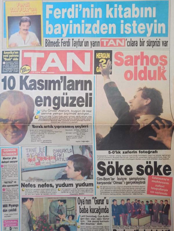 Tan Gazetesi - 10 Kasım 1988 - Mustafa Kemal Atatürk - Oya Aydoğan - Latif Demirbağ - Süleyman Yağız - Galatasaray - Kaçakçıların ''Kara günü'' -