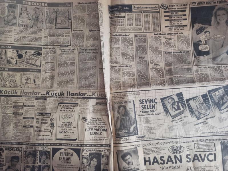 Tan Gazetesi - 13 Ağustos 1986 - Perihan Savaş - Rıfat Alter - Vicdan Arıkan - Hasan Ünal - Ramazan Çınar - Levent Ersöz - Fitnat Ersöz - Cummins Kamyon Reklamı - Süleyman Demirel - Kemal Kınacı - Rahmi Turan - Nurettin Akşit - Prenses Caroline - Stefano Casirgahi - Hasan Savcı - Ferdi Özbeğen - Durakoğlu Çizgi Romanı - Ali Avaz - Şekip Ayhan - Saim Günal - Yıldız Arhan - İhsan Zevit - Tahsin Kaya - Ahu Tuğba - Priscilla fotoğraf ve haberi - Tam Takım Gazete Yıpranma, sararmalar, kupon kesiği ve yırtılmalar zamana bağlı olarak görülebilir