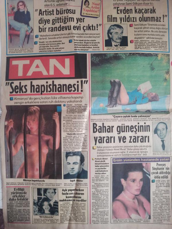 Tan Gazetesi -15 Mayıs 1985 - Artist Bürosu diye gittiğim yer Randevü evi çıktı--Kadir Baka - Tony Curtis - Seyyal Taner - Bedrettin Dalan - Başarının Bedeli fotoromanı - Paolo Tomei - Shirley Goddard - Cinzia Monreale - Hanzo Kazım - Efendi Şadi Çizgi Romanı - Hasan Kaçan - Nihat Fırat - Tuborg Bira Reklamı - Nasıl Artist Yapıldılar ? haberi - Sami Gökçen - Ulrich Welz - İlke Kehrn - Ahmet Murat - Heinz Dieter - Prenses Stephanie - Ahmet Murat fotoğraf ve haberi - Gazete Tam Değildir Sadece 4 Sayfası Mevcuttur
