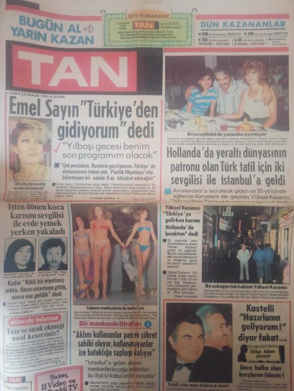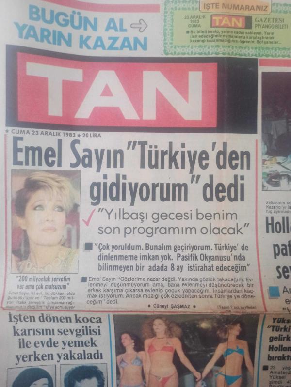 Tan Gazetesi - 23 Aralık 1983 - Seda Sayan - Banker Kastelli - Richard Chamberlain - Rachel Ward - Gülşen Bubikoğlu - Türker İnanoğlu - Prenses Ann -