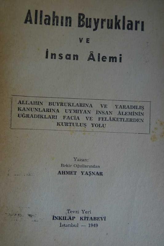 Tanrı Buyrukları ve İnsan Alemi, Bekiroğullarından Ahmet Yaşnar tarafından kaleme alınmıştır. Kitap 1949 yılında İnkılap Kitabevi tarafından yayınlanmıştır. 158 sayfadır. Tanrı Buyrukları ve İnsan Alemi adlı eser Türkçe dilindedir.