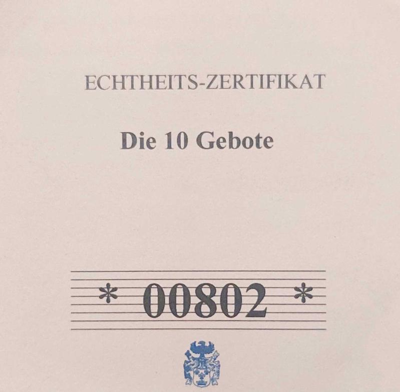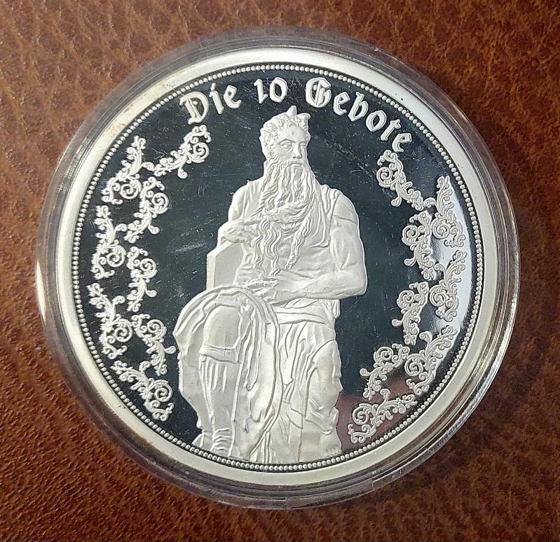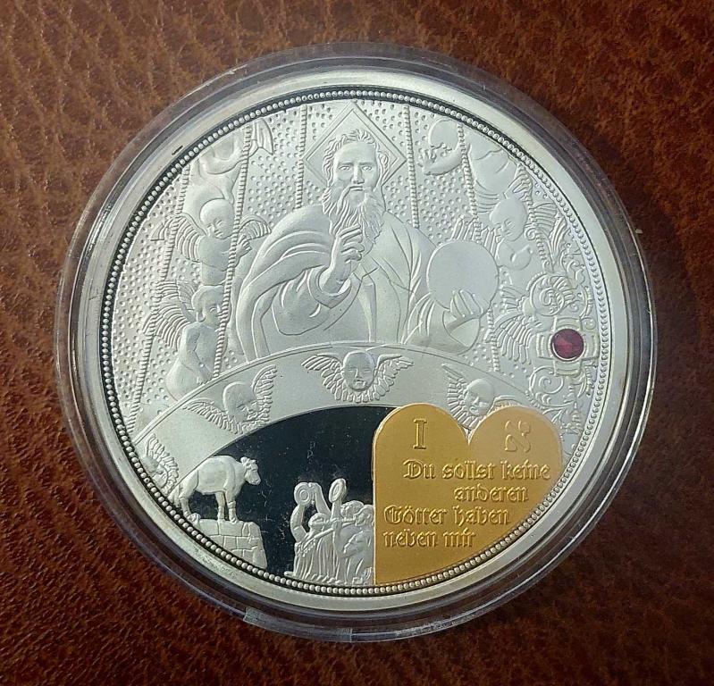 Tanrı'nın 10 Emri/Hz. Musa Temalı, Seri Madalyon Üzerinde... 1. Emir; "Benden Başka Tanrın Omayacak": Bu, On Hristiyan Emri'nin İlkidir ve Musa, Sina Dağı'nda, Tanrı'dan Tevrat Levhaları'nı alırken..." Nadir ve Özenle İşlenmiş, Değerli Bir Parça Olan Bu Hatıra Madalyon; Cu-Gümüş Kaplama İle Kısmi Altın Kaplamalı ve Swarovski Kristali İle Süslenmiştir. Çil (54 gr/50 mm) Orijinal (Almanca) Sertifikalı-Garanti Belgeli "00802" Serisi.