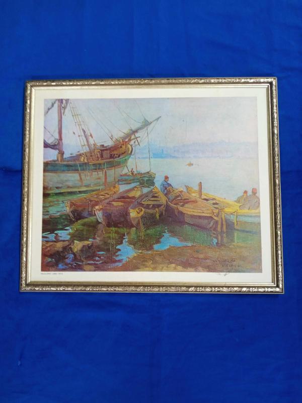 Hikmet Onat(1882-1977) kıyıda balıkçılar adlı baskı tablosu 57*49 çerçeveli