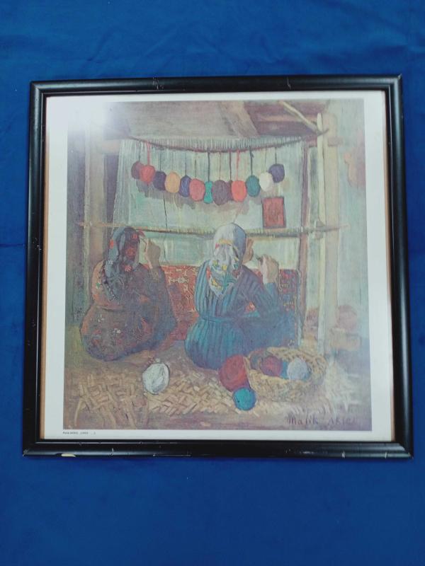 Malik Aksel (1903-1987) halı dokurken adlı baskı tablosu 54*54 çerçeveli