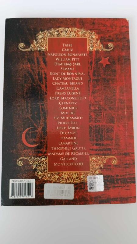 Tasse Cahiz Napoleon Bonaparte William Pitt Demirbaş Şarl Semame Kont de Bonneval Lady Montague Chateau Briand Campanella Prens Eugene Lord Beaconsfield Çernayev Comenius Moltke Hz. Muhammed Pierre Loti Lord Byron Decamps Hammer Lamartine Théophile Gautir Madame de Récamier Galland Montecuccoli