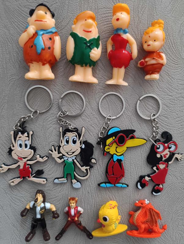 Taş devri Fred Barni Wilma çakıl. TipiTip Tipitoş Hugo hugolayn anahtarlık süs. Kinder boy mini Aslan Max ve arkadaşları figür oyuncak set koleksiyon dekor tasarım hediye vintage retro aksesuar nostalji reklam promosyon minyatür diorama hobi
