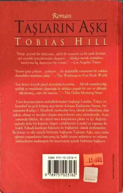 Taşların Aşkı, Tobias Hill tarafından kaleme alınmıştır. Kitap 2004 yılında İNKILAP tarafından yayınlanmıştır. 632 sayfadır. Taşların Aşkı adlı eser Türkçe dilindedir.