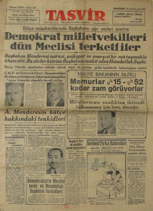 Tasvir Gazetesi - 19 Aralık 1946 - Demokrat Milletvekilleri Meclisi Terkettiler, en son 1 yıl önce güncellenmiştir.