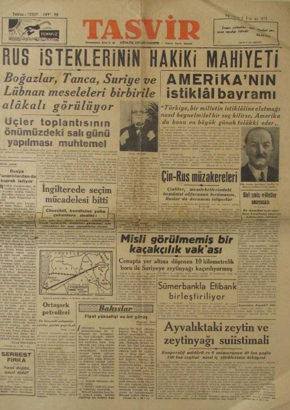 Tasvir Gazetesi - 5 Temmuz 1945 - Rus İsteklerinin Hakiki Mahiyeti, en son 1 yıl önce güncellenmiştir.