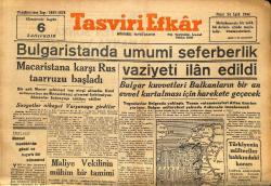 Tasviri Efkar Gazetesi 24 Eylül 1944 - Bulgaristan'da Umumi Seferberlik Hali İlan Edildi GZ71314