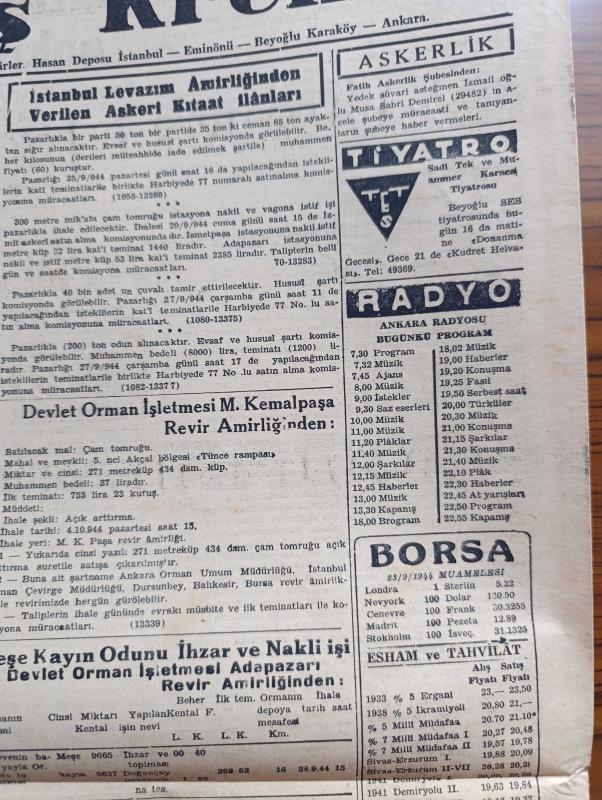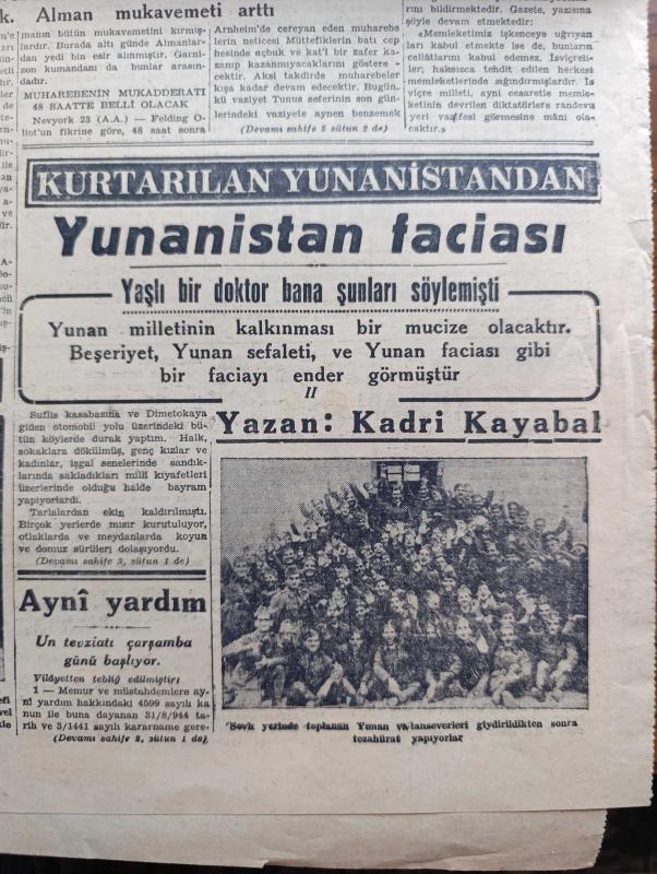 Tasviri Efkar Gazetesi - 24 Eylül 1944 - günün yazısı hususi teşebbüsün güzel ve hayırlı bir numunesi - Bulgaristan'da umumi seferberlik vaziyeti ilan edildi - Macaristan'a karşı Rus taarruzu başladı - Türkiye'nin mülteciler hakkındaki kararı - Batı cephesi'nin haritada son vaziyeti - kurtarılan Yunanistan'dan yazan Kadri Kayabal - Sabık Roma polis şefi Pietro Caruso idam edilmiştir - Roosevelt'in Çin hakkında beyanatı - İsviçre Nazi şeflerini kabul etmeyecek - İnhisar Maddelerinin Fiyatları İndirilecek - pazardan pazara yazan Server Bedi - Ada Kuşları yazan Jeanne Galzy Yazı Dizisi - harpten sonra Almanya Ve sulh Yazan Georg W. Norris - Galatasaray kulübü'nün senelik Kongresi - hareket harbi ve siyasi durum yazan Muharrem Fevzi Togay - Dil Bayramı - De Gaulle Vichy'ci siyaset adamlarını vazifelerinden affetti - Fenerbahçe stadında Fenerbahçe Vefa Maçı - Hasan Traş Kremi - saç bakımı için Petrol Nizam - donanma gecesi ve kudret helvası oyunları Beyoğlu ses tiyatrosunda - borsa adlı eser, Kitap > Süreli Yayınlar > Gazeteler > Türkiye > Genel > Günlük kategorisinde İkinci El olarak satıştadır.