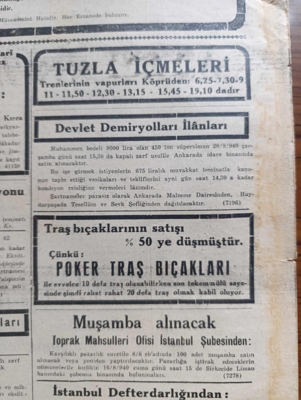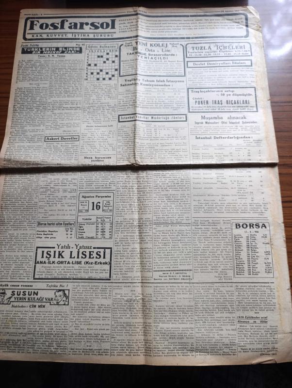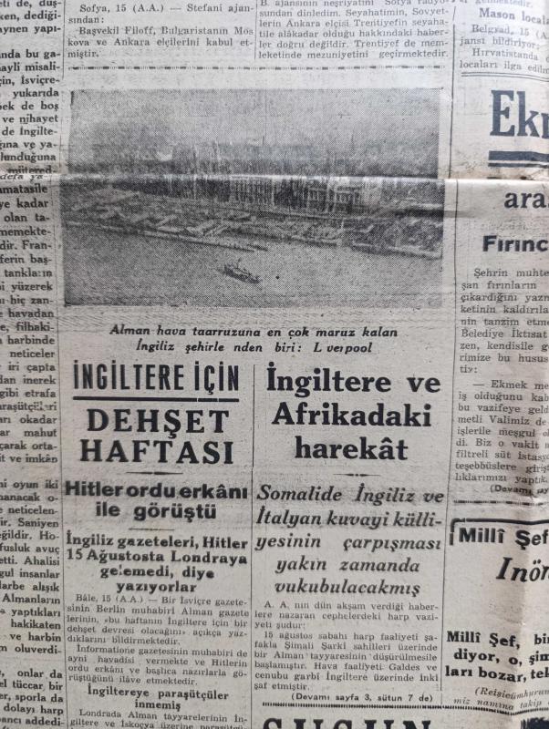 Tasviri Efkar Gazetesi - Turkish Newspaper - 16 Ağustos 1940 - İngiltere için dehşet haftası yazan Ebuzziya Zade Velid Başmakale - Reisicumhur İsmet İnönü Alman Elçisi İle görüştü - Moskova elçimiz Ali Haydar Aktay akşam Sovyet vapurundan çıkarken fotoğraf - başvekil Refik Saydam İstanbul'a geliyor - Sovyetler Fin hududuna 28 fırka yığdılar - Arnavutluk'ta İtalya'ya karşı isyan - bir Yunan harp gemisi batırıldı - İngiltere taarruza geçecek - ekmek meselesi belediye cezaları fırınlar arasında taksim ediliyor - İngiltere için dehşet haftası - Hitler Ordu erkanı ile görüştü - Alman hava taarruzuna en çok maruz kalan İngiliz şehirlerinden Liverpool fotoğraf - İsmet İnönü'nün köylülerle hasbihali - Orhan Seyfi'nin söyledikleri konuşan Kandemir - at yarışlarının sonu - hikaye bir sanat sırrı yazan Mahmut Yesari Yazı Dizisi - halk plajından para alınmayacak - Türk şehri neydi ne olmalıdır yazan Hilmi Ziya Ülken - yüzme teşvik müsabakaları - Tuzla İçmeleri - Poker tıraş bıçakları - Yeni kolej adlı eser, Kitap > Süreli Yayınlar > Gazeteler > Türkiye > Genel > Günlük kategorisinde İkinci El olarak satıştadır.