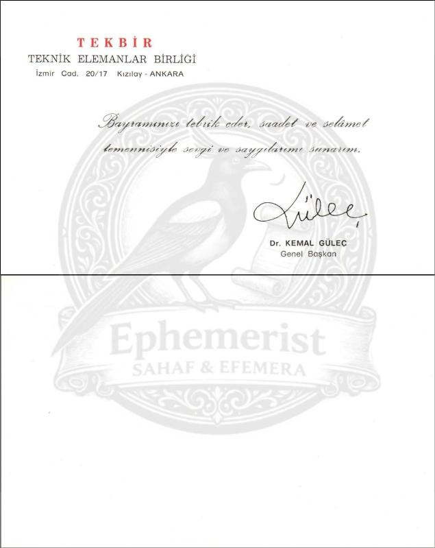 Tebrik kartı | 10x15 cm. | 1960/70 | TEKBİR - Teknik Elemanlar Birliği bayram tebriği, en son bir ay önce güncellenmiştir.