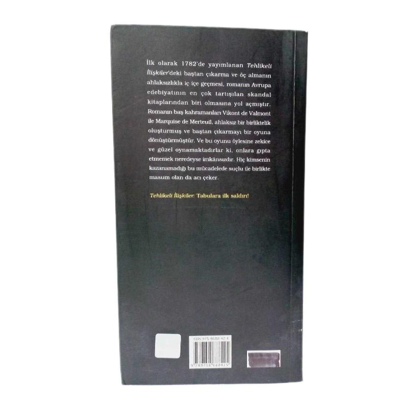 Tehlikeli İlişkiler, Choderlos de Laclos tarafından kaleme alınmıştır. Kitap 2002 yılında Bordo siyah Yayınları tarafından 9786051850368 ISBN kodu ile yayınlanmıştır. Satışta olan kitap, yayınevinin 1. baskısıdır. Bu baskının çevirisi Samih Tiryakioğlu tarafından yapılmıştır. 629 sayfadır. Sayfa bilgisi 3.HAMUR olarak belirtilmiştir. Tehlikeli İlişkiler adlı eser Türkçe dilindedir.