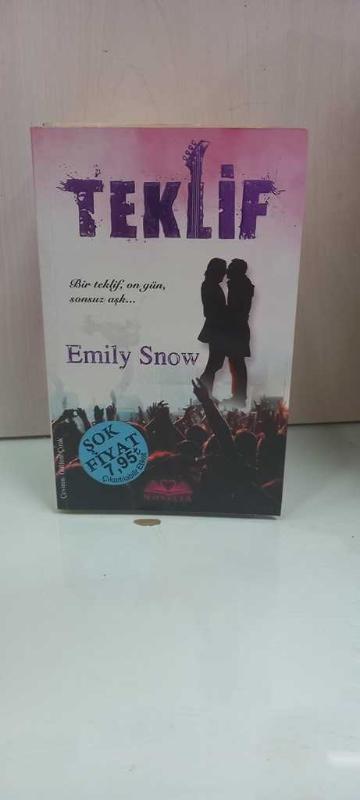 Teklif, EMILY SNOW tarafından kaleme alınmıştır. Kitap 2015 yılında NOVELLA tarafından [İstanbul] yayınlanmıştır. Bu baskının çevirisi GÜLFEM ÇIRAK tarafından yapılmıştır. 303 sayfadır. Teklif adlı eser Türkçe dilindedir.