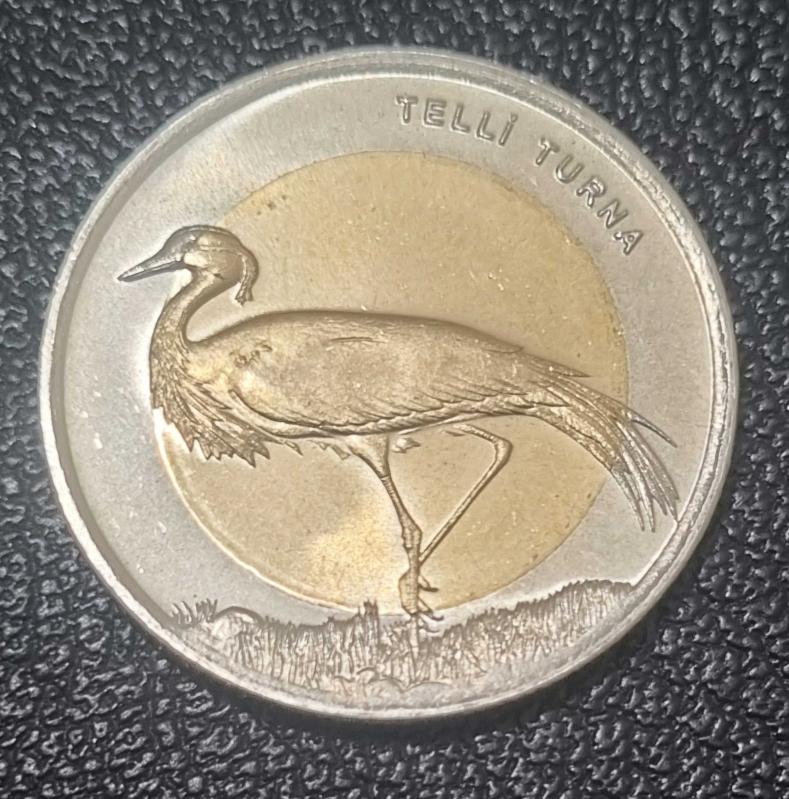 Darphane tarafından üretilen Türkiyde görülen hayvan türleri serisi 2013 yılı telli turna hatıra parası. Kondisyon çil olup hatıra paranın çapı 27.5 mm dir.