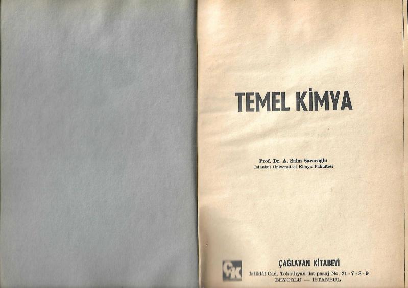 Temel Kimya, S. Saim Saracoğlu tarafından kaleme alınmıştır. Kitap 1975 yılında Çağlayan Kitabevi tarafından [İstanbul] yayınlanmıştır. 429 sayfadır. Temel Kimya adlı eser Türkçe dilindedir.