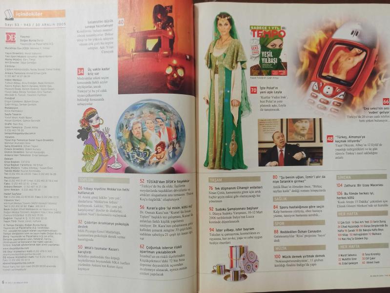 Tempo Dergisi - 30 Aralık 2005 - Telefonda Seks yapan ev kadınları anlatıyor - Sinan Çetin - Recep Tayyip Erdoğan - Hülya Avşar - Doğa Rutkay - Kaya Çilingiroğlu - Mustafa Koç - Cep Seksi'nin sesi evden geliyor - Sinan Çetin - Berrak Tüzünağaç - Yılmaz Erdoğan - Çağan Irmak - Timuçin Esen - Attila İlhan - Mustafa Kemal Atatürk - Özhan Canaydın - Candan Erçetin - Aysun Kayacı - Eyşan Özhim - Özhan Canaydın - adlı eser Türkçe dilindedir.
