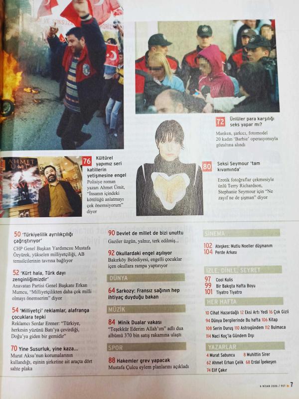 Tempo Dergisi - 6 Nisan 2006 - PKK vuruyor Milliyetçi Türkiye'yi kuruyor - Ünlüler para karşılığında seks yapar mı - Minik Dualar vakası - Hakemler grev yapacak - Okullardaki engeller aşılıyor - Devlet de millet de bizi unuttu - Milliyetçiliği bölücü terör yükseltiyor - TC kimliği Müslümanlıktan önemli - Yaşanmak istenilen Osmanlı değil, Türkiye -