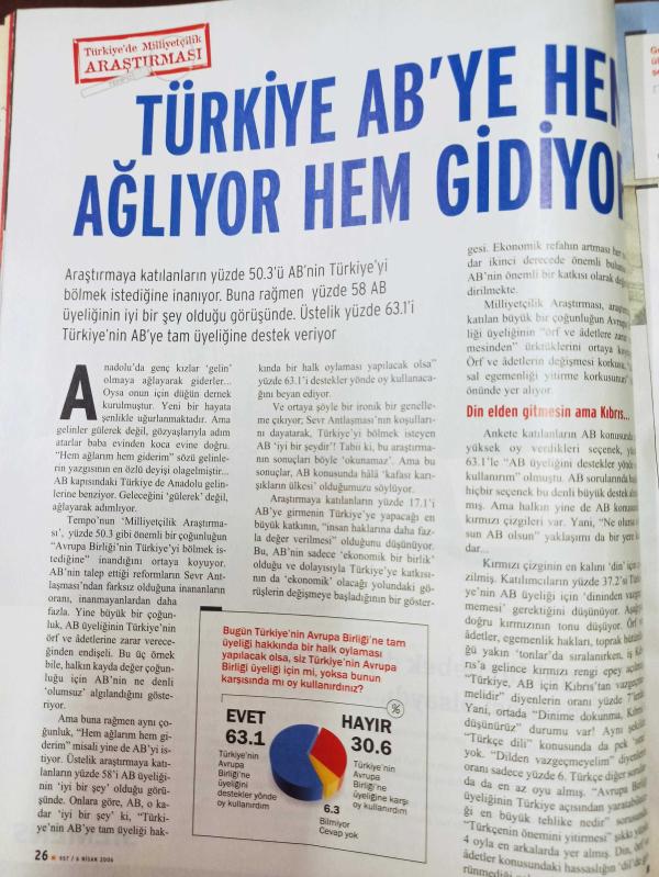 Tempo Dergisi - 6 Nisan 2006 - PKK vuruyor Milliyetçi Türkiye'yi kuruyor - Ünlüler para karşılığında seks yapar mı - Minik Dualar vakası - Hakemler grev yapacak - Okullardaki engeller aşılıyor - Devlet de millet de bizi unuttu - Milliyetçiliği bölücü terör yükseltiyor - TC kimliği Müslümanlıktan önemli - Yaşanmak istenilen Osmanlı değil, Türkiye - adlı eser Türkçe dilindedir.