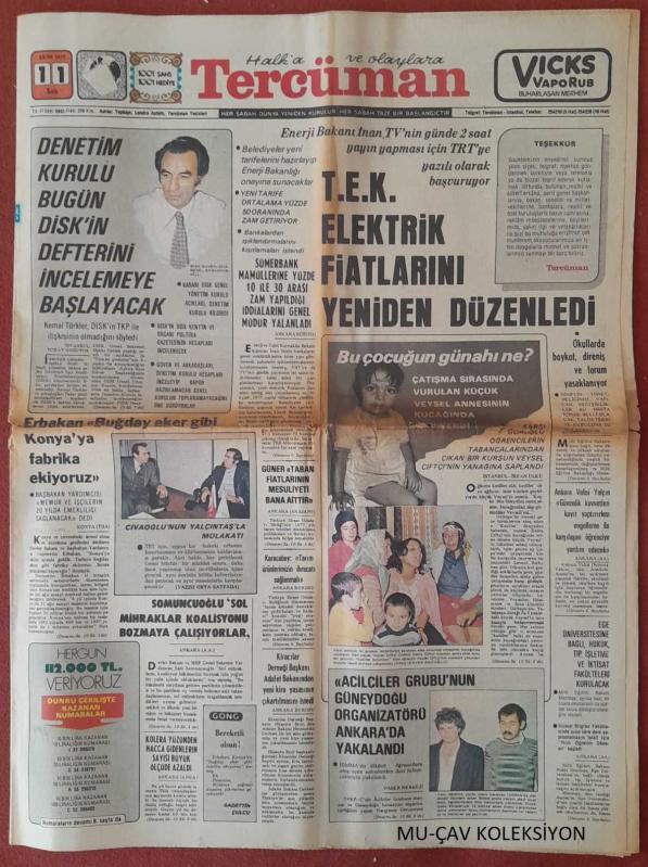 Kitap 1977 yılında yayınlanmıştır. 12 sayfadır. Tercüman Gazetesi 11 Ekim 1977 Denetim Kurulu Bugün DİSK'in Defterini İncelemeye Başlayacak,İstanbul Belediyesi DİSK Militanlarının Arpalığı Olmuştu,CHP İktidar Olamamanın AP İse Koalisyonun Sancılarını Çekiyor adlı eser Türkçe dilindedir.