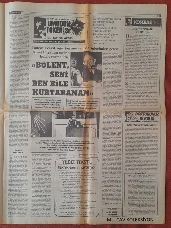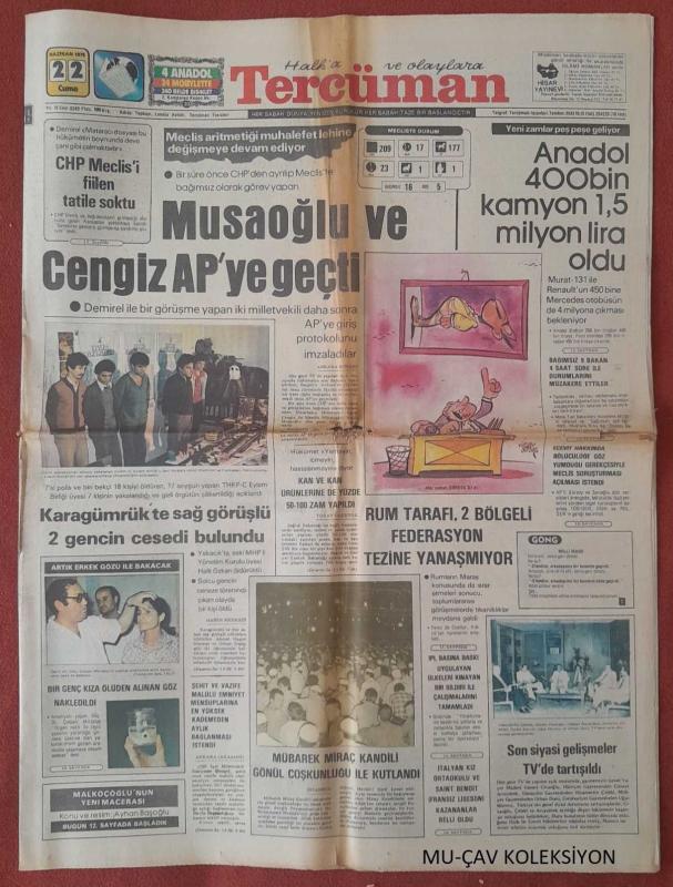 Kitap 1979 yılında yayınlanmıştır. 16 sayfadır. Tercüman Gazetesi 22 Haziran 1979 Musaoğlu ve Cengiz AP'ye Geçti,Rum Tarafı 2 Bölgeli Federasyon Tezine Yanaşmıyor,Türkiye'de Enflasyon İle Devalüasyon Yarış Haline Getirilmiştir adlı eser Türkçe dilindedir.
