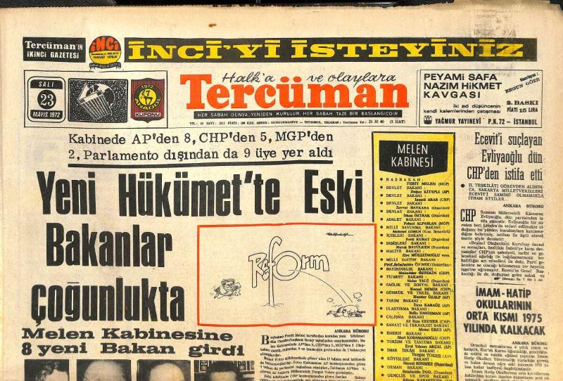 Tercüman Gazetesi 23 Mayıs 1972 - Yeni Hükümet'te Eski Bakanlar Çoğunlukta - Beş Boksörümüz Afrika'ya Karşı Balkan Karmasında Dövüşecek! GZ144452, en son 19 gün önce güncellenmiştir.