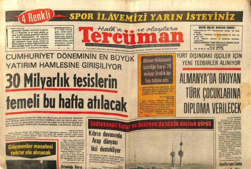 Tercüman Gazetesi 23 Temmuz 1975 - Almanyada Okuyan Türk Çocuklarına Diploma Verilecek - Kıbrıs Davasında Arap Dünyası Bizi Destekliyor GZ98551, en son 20 gün önce güncellenmiştir.