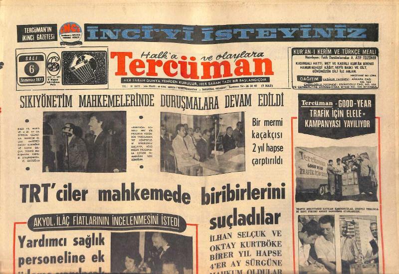 Tercüman Gazetesi 6 Temmuz 1971 - TRT'ciler Mahkemede Birbirlerini Suçladılar - Kudüs Camii Yıkılma Tehlikesi Karşısında GZ145584, en son 17 gün önce güncellenmiştir.