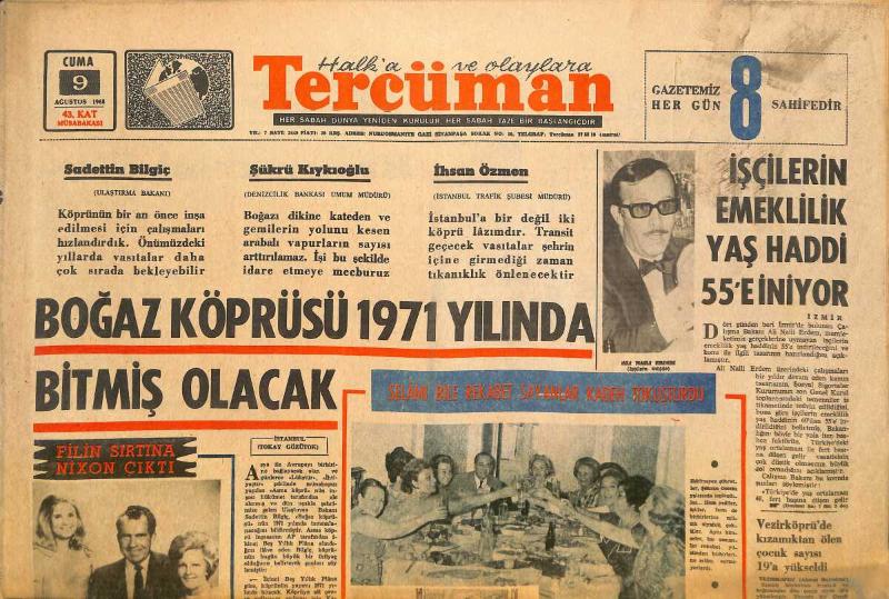 Tercüman Gazetesi 9 Ağustos 1968 - Boğaz Köprüsü 1971 Yılında Bitmiş Olacak - Nixon , Başkan Adaylığına Seçildi GZ145477, en son 20 gün önce güncellenmiştir.