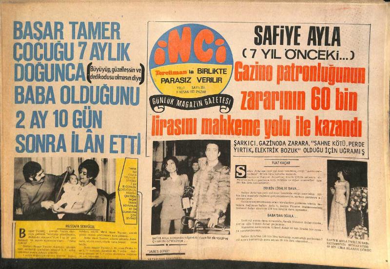 Tercüman Gazetesi İnci Eki 11 Nisan 1971 - Safiye Ayla Gazino Patronluğunun Zararını 60 Bin Lirasını Mahkeme Yolu İle Kazandı! GZ145749, en son 23 gün önce güncellenmiştir.