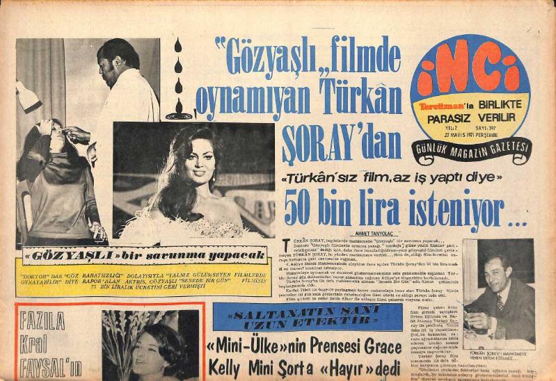 Tercüman Gazetesi İnci Eki 27 Mayıs 1971 - Gözyaşlı Filmde Oynamayan Türkan Şoray'dan 50 Bin Lira İsteniyor GZ147363, en son 23 gün önce güncellenmiştir.