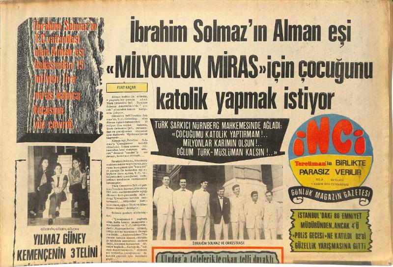 Tercüman Gazetesi İnci Eki 7 Kasım 1970 - İbrahim Solmaz'ın Alman Eşi Milyonluk Miras İçin Çocuğunu Katolik Yapmak İstiyor GZ145096, en son 17 gün önce güncellenmiştir.