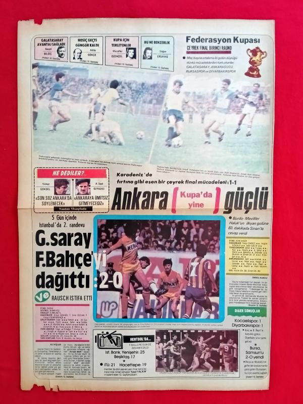Tercüman Gazetesi Spor Sayfası - 8 Nisan 1982 - Galatasaray Fenerbahçe'yi Dağıttı 2-0 , Trabzonspor 1-1 Ankaragücü