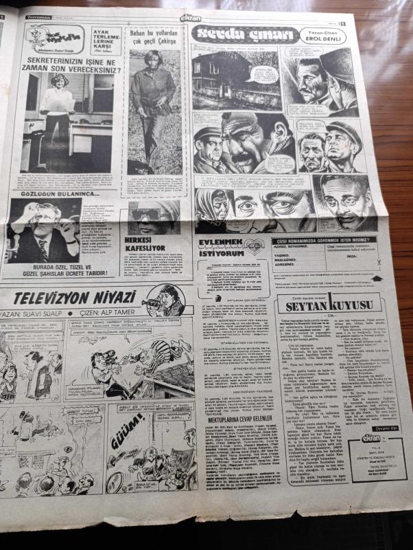 Tercüman İnci Ekran Gazetesi - 17 Ocak 1978 - Tarık Akan'la Güçbirliği Yapan Cüneyt Arkın Sinema Sanatçıları Televizyon Rekabetine Karşı Birleşmeli - Aktör Cüneyt Arkın Güneş Ne Zaman Doğacak İsimli Filmde Rusya'dan Kaçıp Yurda Sığınan Bir Türk'ü Canlandırıyor - Cüneyt Arkın Ve Tarık Akan Fotoğraf - Kaynanalar Dizisinin Sevimli Hizmetçisi Defne Yalnız 1979 Eurovision Yarışmasına Katılacağım Diyor Fotoğraf - Nevin Pere Yeğenlerinin Eşiğinde Ekrana Gelecek - TV Yıldızı Foto Roman Oynayanlar Suna Yıldızoğlu Şevki Erdal Ve Belkıs Gökçe - Kadın Ev Köşesi - Neden Saçsız Kalınır - Televizyon Niyazi Yazan Suavi Süalp Çizen Alp Tamer - Sevda Kuyusu Yazan ve Çizen Erol Denli - Makaracı Suavi Süalp - Evlenmek İstiyorum - Tarihi Macera Romanı Şeytan Kuyusu - Gülizar Filmi Emel Sayın Ediz Hun Bol Bol Şarkı Var Fotoğraf - Aytül Kasar Sunuculuğu Da Yaptığı Programda Beş Şarkı İle Ekrana Geliyor - Ara Nağmesi Yazan Aziz Üstel adlı eser, Kitap > Süreli Yayınlar > Gazeteler > Türkiye > Genel > Günlük kategorisinde İkinci El olarak satıştadır.