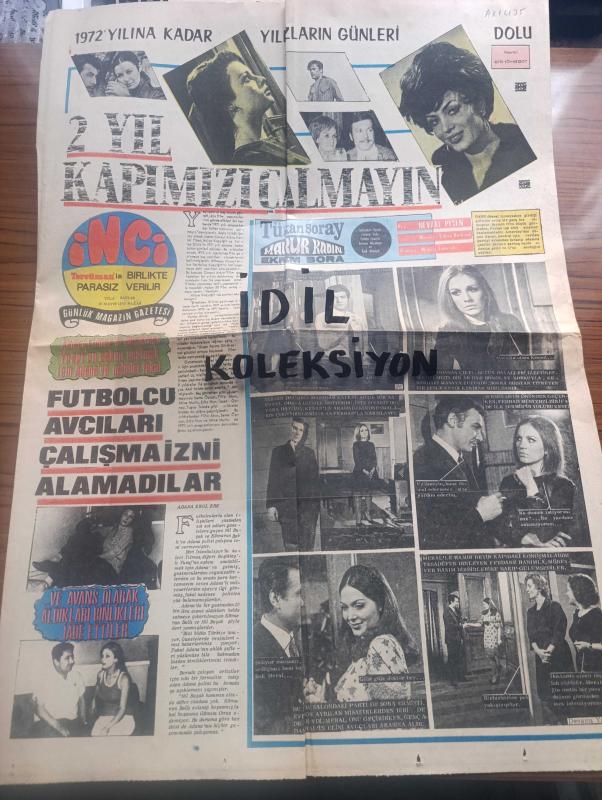 Tercüman İnci Gazetesi - Turkish Newspaper - 10 Mayıs 1970 - 1972 yılına kadar yıldızların günleri - Fatma Girik fotoğraf - Hülya Koçyiğit fotoğraf - Cüneyt Arkın fotoğraf - Kartal Tibet fotoğraf - Türkan Şoray fotoğraf - Mağrur Kadın başrolde Türkan Şoray Ekrem Bora Süleyman Turan Leman Akçatepe Foto Roman - futbolcu avcıları çalışma izni alamadılar - Şu bahsettiğimiz ölü başrolde Müşfik Kenter Serpil Örümcer Foto Roman - rüyalarınız karakteriniz talihiniz Astro Grafoloji uzmanı hizmetinizde - ünlü davulcu Durul Gence açıkladı topluluğum dağılmayacak - tarihi aşk ve macera romanı Kleopatra yazan Murat Sertoğlu - bizim evin yemeğinde samimi bir grup Muammer Çavuşoğlu Samet Ağaoğlu Emin Kalafat İhsan Çavuşoğlu gazetemizin sahibi Kemal Ilıcak ve eşi Nazlı Ilıcak Fotoğrafı - Celal Bayar kızı ve torunları ile Fotoğrafı - Genç İş adamlarımızdan Fazıl kaçar evlendi Fotoğrafı - Beyböri başrolde Salih Güney Müjgan Ağralı Aynur Aydan ve Tanju Şakar Foto Roman - Halit Kıvanç sunar adlı eser, Kitap > Süreli Yayınlar > Gazeteler > Türkiye > Genel > Günlük kategorisinde İkinci El olarak satıştadır.