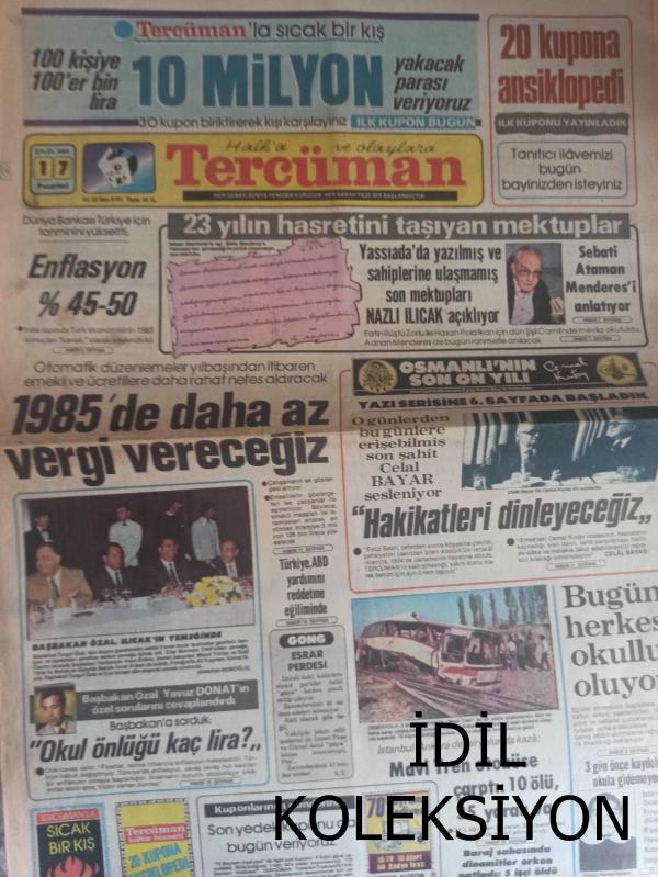 Tercüman Magazin Gazetesi - 17 Eylül 1984 - Sebati Ataman Menderes'i Anlatıyor - Hakikatleri Dinleyeceğiz - Celal Bayar - Cemal Kutay - Bugün Herkes Okullu Oluyor - Mavi Tren Otobüse Çarptı: 10 Ölü, 35 Yaralı Var - Başbakan Turgut Özal - Kemal Ilıcak'ın Yemeğinde - Osmanlı Toprağı Yağma Ediliyordu - Büyük soygun - Sözün Kısası - Rauf Tamer - ''Bu Sahada Futbol Oynanmaz'' - Arçelik, Milangaz'ı Vurdu Geçti - Düşünün Antalya'da Mutlu Bir Almanya'lı - İtalya Ligi Başladı - Beşiktaş Viyana'da - İyi ki Çelebiç Var - Ve Aslan Kükredi fotoğraf ve haberi - Gazete Tam Değildir Sadece 4 Sayfası Mevcuttur Yıpranma, sararmalar, kupon kesiği ve yırtılmalar zamana bağlı olarak görülebilir
