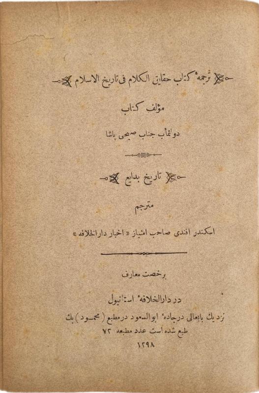 Tercüme-i Kitab-ı Hakaikü'l - Kelam fi Tarihi'l - İslam (Farsça) - Subhi Paşa Mahmet Bey Matbaası 1298 301 Sayfa