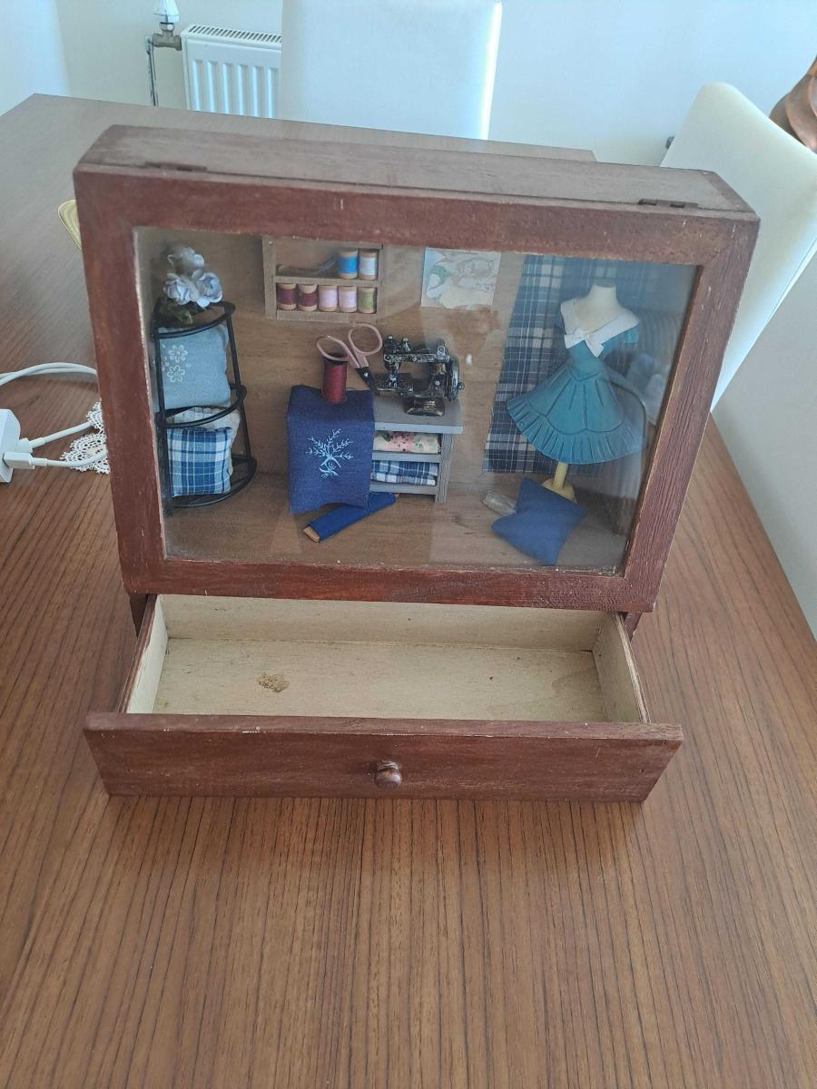 Terzi Dükkanı Temalı Çekmece başlıklı ürün, Antika-Koleksiyon, Hobi-Sanat > Ev Dekorasyonu ve Aksesuar > Dekorasyon > Biblo, Figür, Obje kategorisinde İkinci El olarak satışa sunulmuştur.