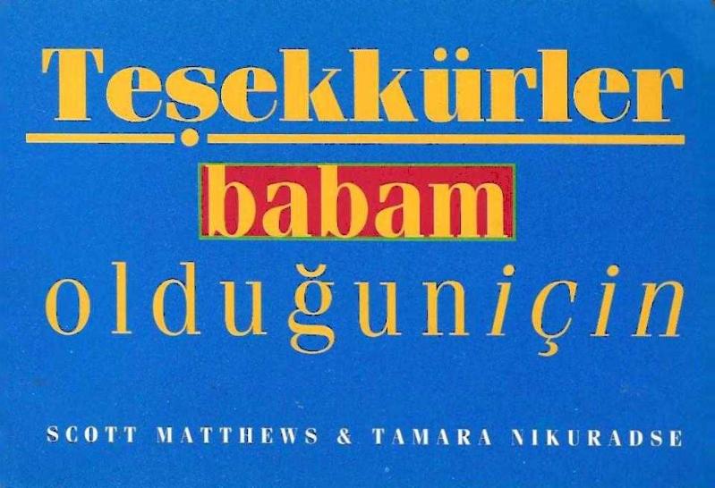 Teşekkürler babam olduğun için, Scott Matthews, Tamara Nikuradse tarafından kaleme alınmıştır. Kitap 1995 yılında Oğlak Yayınları tarafından [İstanbul] 975-329-064-0 ISBN kodu ile yayınlanmıştır. Bu baskının çevirisi İpek Haznedaroğlu tarafından yapılmıştır. Teşekkürler babam olduğun için adlı eser Türkçe dilindedir.