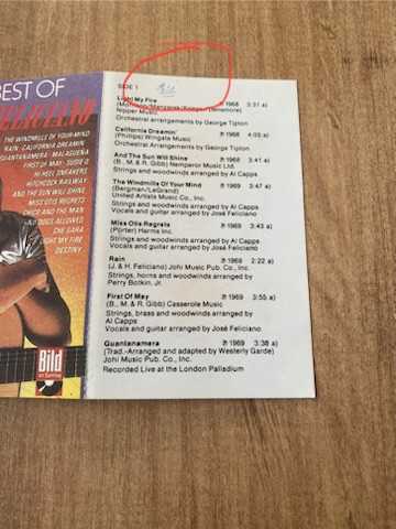 The Best Of Jose Feliciano Kaset ( İşaretli fotoğrafta, kartonette yazı var ), bir ay önce satışa sunulmuştur.