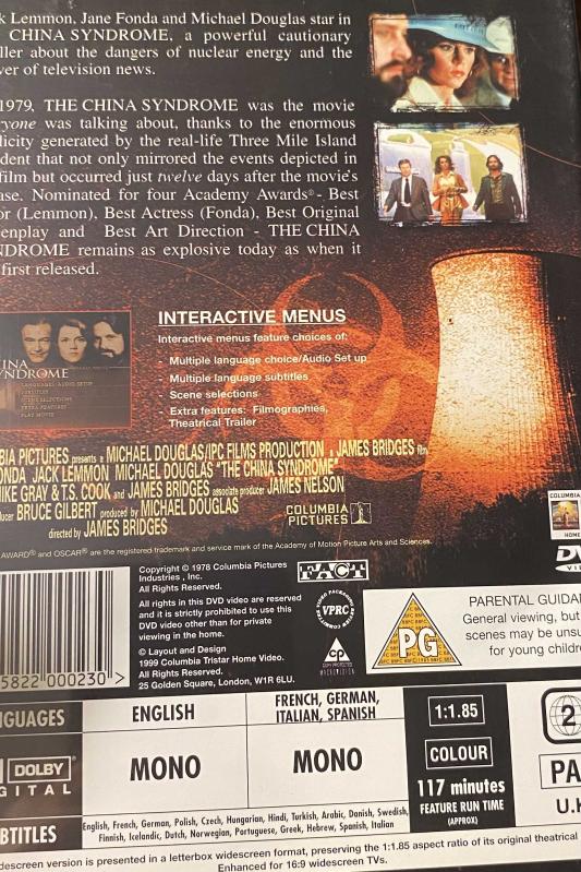 The China Syndrome başlıklı ürün, Efemera, Müzik, Sinema > Sinema, Film, Dizi > DVD > Yabancı DVD kategorisi altında İkinci El olarak satılmaktadır.