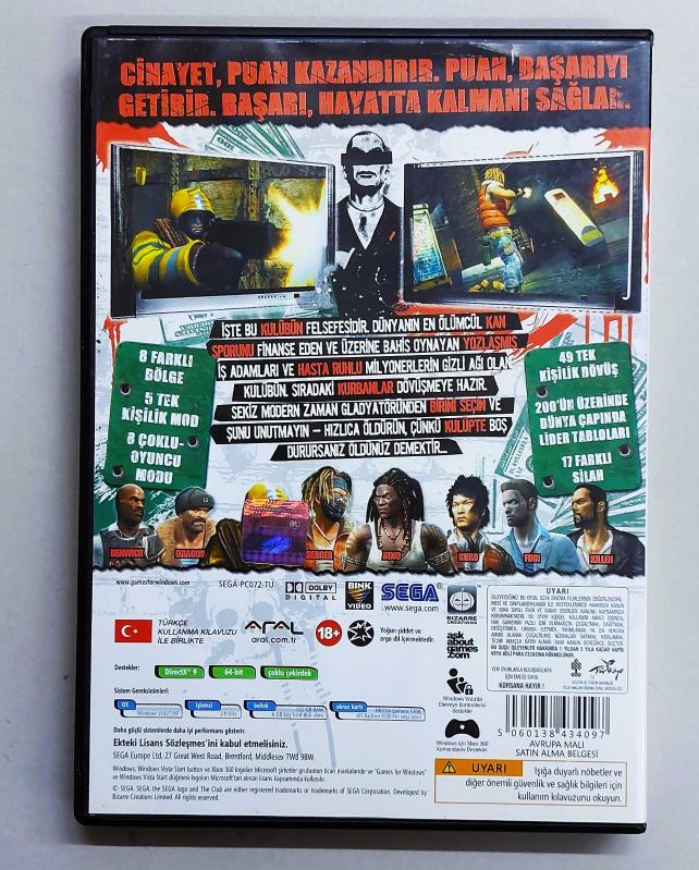 2008 yılında piyasaya sürülen ve ünlü oyun firması Sega tarafından geliştirilen dönemin efsanevi oyunu The Club. Kutu içeriği eksiksizdir. Aral kitapçığı mevcuttur. Diskte oynatmaya engel teşkil etmeyen çizikler mevcuttur. Test edilmiştir, sorunsuz çalışmaktadır. Test görüntülerini ilan fotoğraflarından inceleyebilirsiniz. Pek çok Games for Windows tabanlı oyunun aksine kod istemeden sorunsuz bir şekilde çalışan nadir baskılardandır. Fiziksel olarak PC DVD koleksiyonu yapanlar ve oyunun hayranları için arşivlik bir üründür.