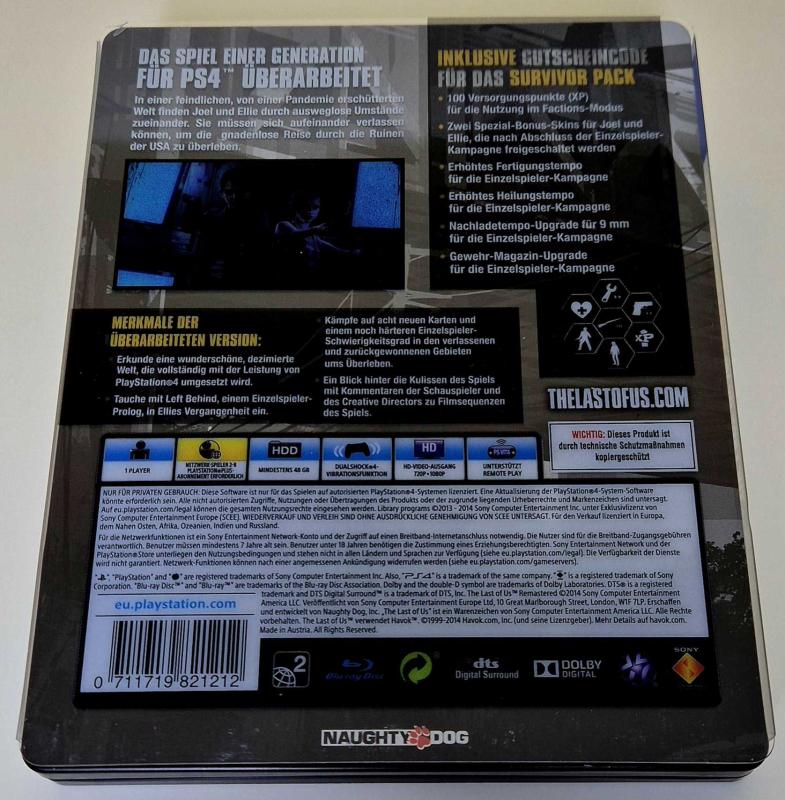The Last Of Us Remastered Custom Steelbook Collector's Edition Ps4 başlıklı antika/koleksiyon objesi Avrupa menşe’lidir. 2000 ve sonrası dönemine aittir.