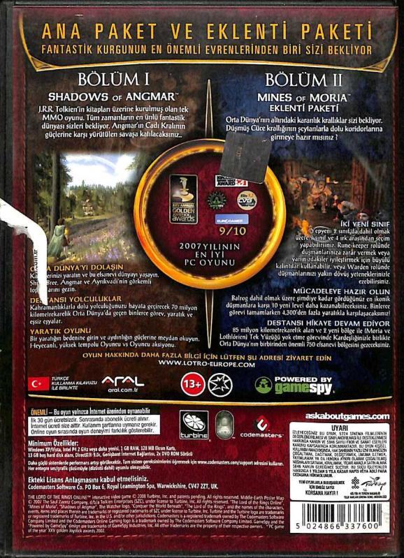 The Lord Of The Rings Online DVD Oyun Bölüm 1 & 2 (İkinci El) DVD2457, en son 19 gün önce güncellenmiştir.