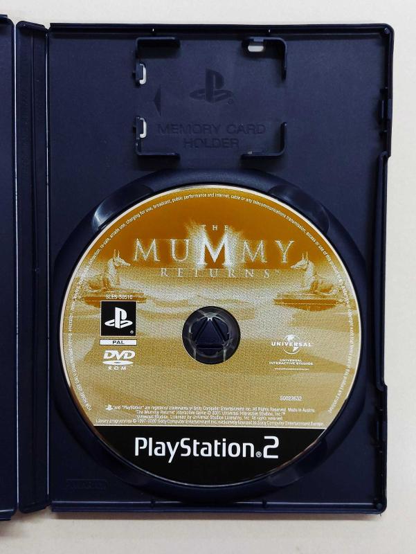 2001 yılında piyasaya sürülen, orijinal PS2 Sony lisans damgalı efsanevi The Mummy ( Mumya ) serisinden The Mummy Returns ( Mumya Dönüyor ) oyunu. Dil, İngilizce'dir. Oyunda taraf seçebiliyorsunuz. İster Rick O'Connell olarak oyunun ''iyi'' senaryosunu oynayın, istersenizde Imhoteph olarak oyunun ''kötü'' senaryosunu oynayın. Diskte kullanıma bağlı oluşan çizikler mevcuttur. Oyun denenmiştir, sorunsuz bir şekilde çalışmaktadır. Son fotoğraflarda çalışır halde görüntüleri mevcuttur. Son derece nadirdir. Kutulu PS2 oyunu biriktirenler ve Mumya hayranları için arşivlik bir üründür.